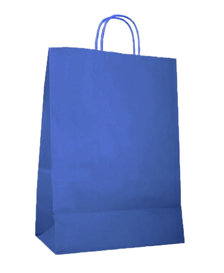 - Бумажные крафт пакеты синего цвета с кручеными ручками, размер 26x15x35 см.
