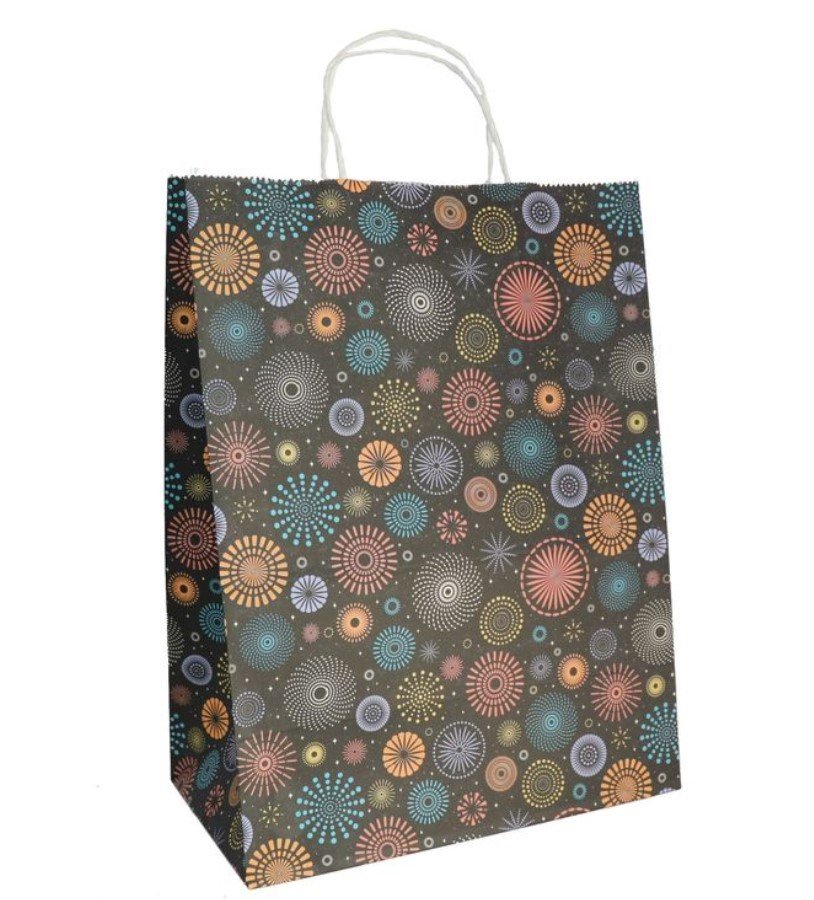 - Подарочные крафт-пакеты 35x26x15 см с рисунком "Фейерверк" отлично подходят для подарков, аксессуаров, книг, сувениров и других различных товаров.