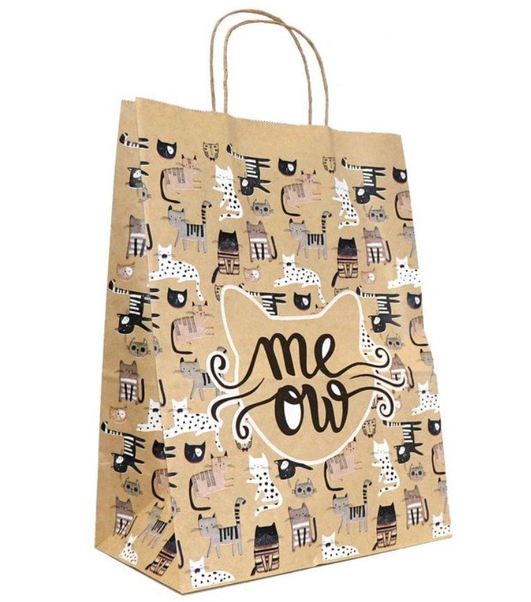 Крафт пакет с кручеными ручками, 350*260*150 (В*Ш*Г) мм, "Мяу"