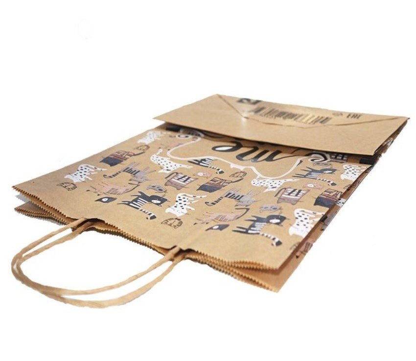 - Кручёные ручки обеспечивают удобство переноски. Прямоугольное дно позволяет ставить пакет на ровную поверхность.