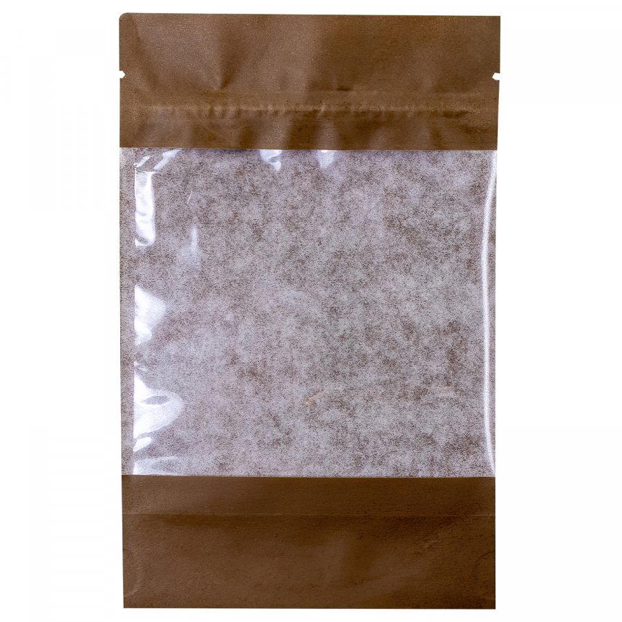 - Крафтовые пакеты дой-пак с окошком 10 см, размер 12 x 18,5 см, цвет светло-коричневый.