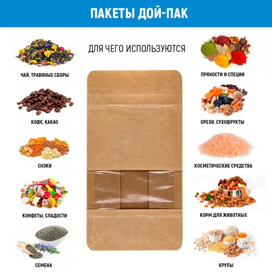 - Пакеты дой-пак размер 10 x 19 см, восьмишовные, цвет крафт бумажный.