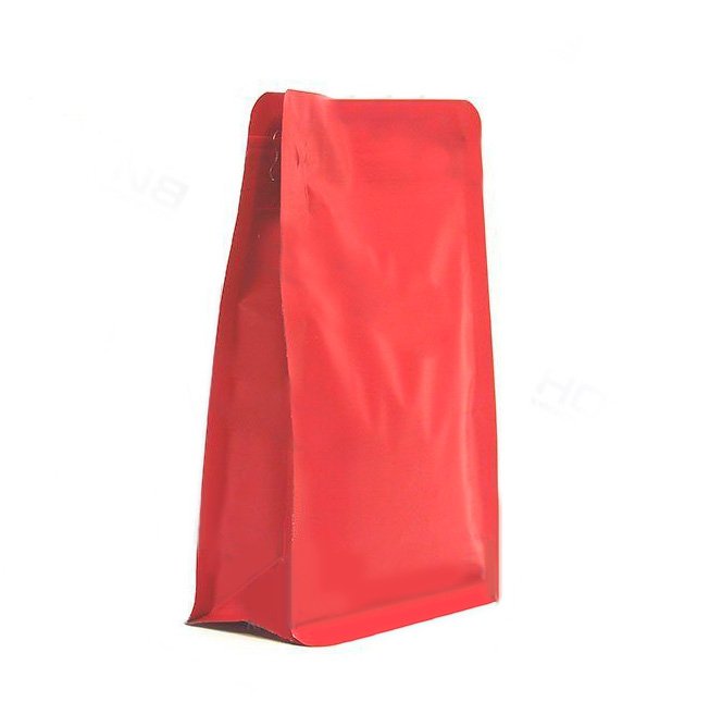 Пакет восьмишовный с плоским дном красный матовый (186С) с отрывным замком зип лок 110+60х180
