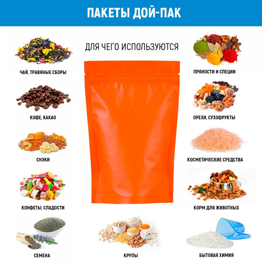 Матовые пакеты дой-пак размер 13,5 x 20 см, цвет оранжевый.