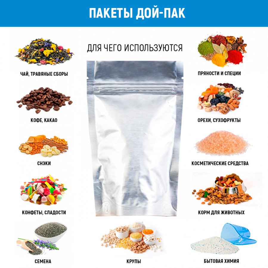 Подходят для фасовки и хранения мелкой и сыпучей продукции (чай и травяные сборы, кофе, специи, орехи, сухофрукты, крупы и бобовые, сладости, различные снэки, скрабы, морская соль, корма для животных и др.