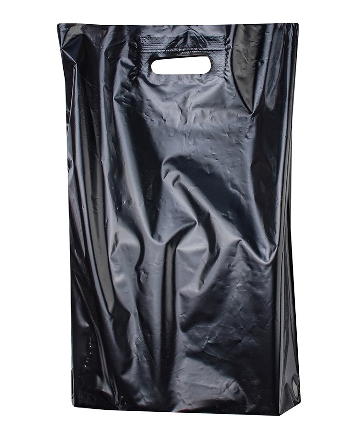 - Пакеты черного цвета из материала ПВД с вырубной ручкой, 40x50 см, толщиной 70 мкм, донная складка - 3 см.