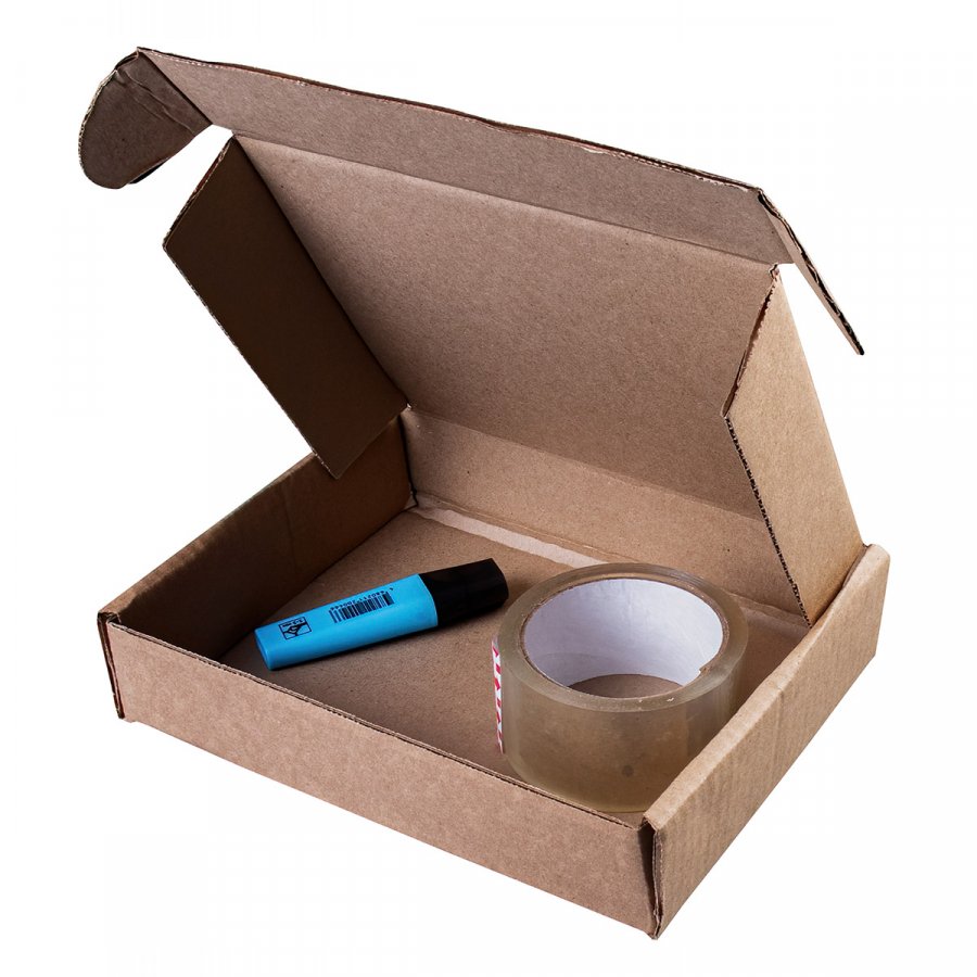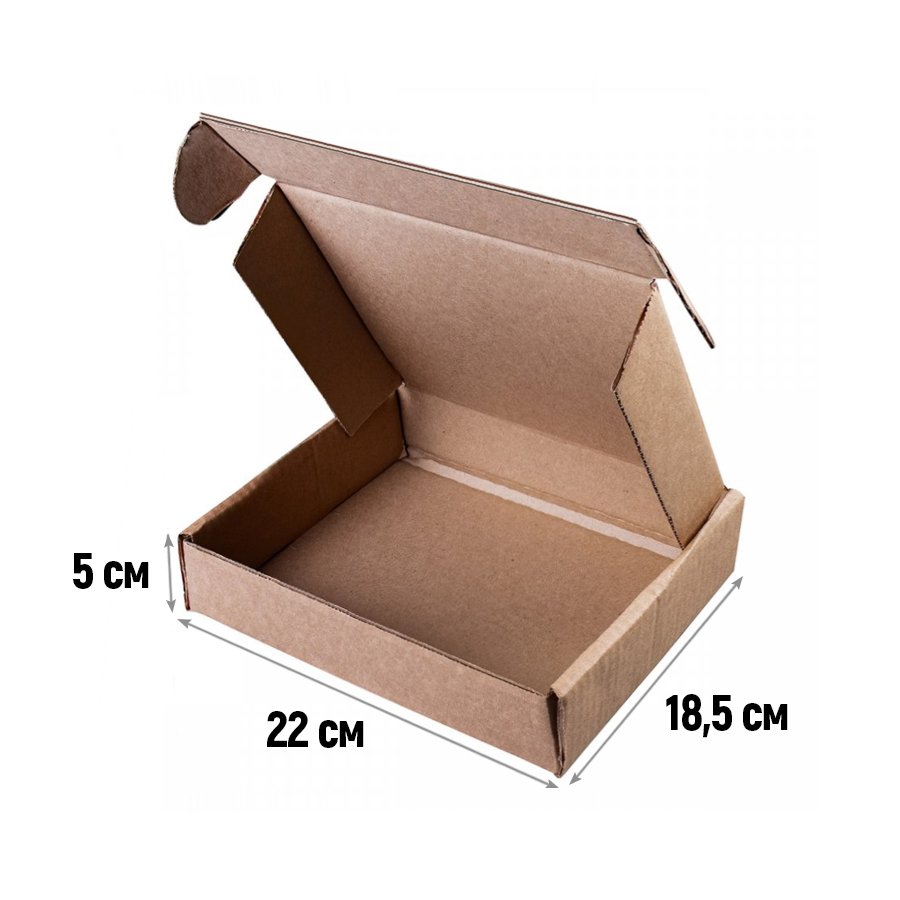 - Өздігінен жиналатын қоңыр түстегі қорап өлшемі 22x18,5x5 см (картон маркасы Т-23) - әртүрлі өнімдерді қаптау және жеткізу үшін танымал және қолжетімді нұсқа. Олар базарларда, интернет-дүкендерде, бөлшек саудада және тауарларды пошта арқылы жіберуде қолданысқа ие.