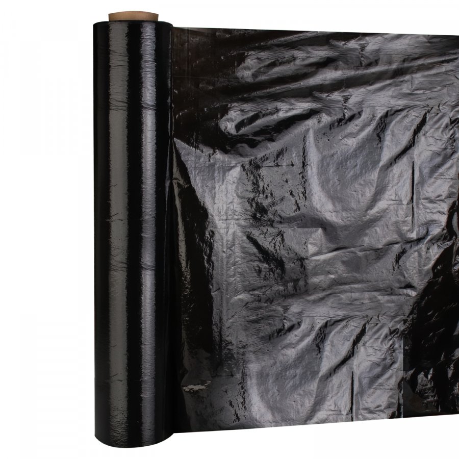Черная стрейч пленка шириной 50 см и длиной 220 метров применяется в промышленности, на логистических предприятиях, в торговых центрах. Используется для упаковки багажа, продуктов питания, мебели, при переезде.