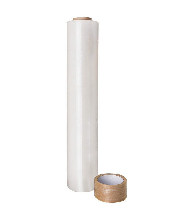 Белая стрейч пленка шириной 50 см и длиной 220 метров применяется в промышленности, на логистических предприятиях, в торговых центрах. Используется для упаковки багажа, мебели, при переезде.