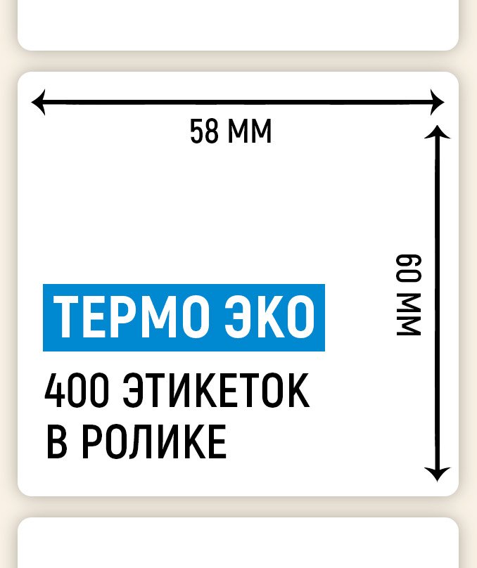 - Белые термоэтикетки ЭКО 58x60 мм на самоклеящейся основе используются для маркировки продукции, не подлежащей длительному хранению.