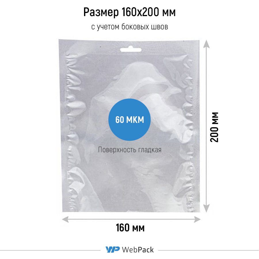Вакуумный пакет 160*200мм, ПЭТ/ПЭ, 60 мкм, с еврослотом