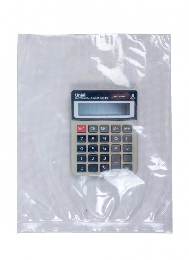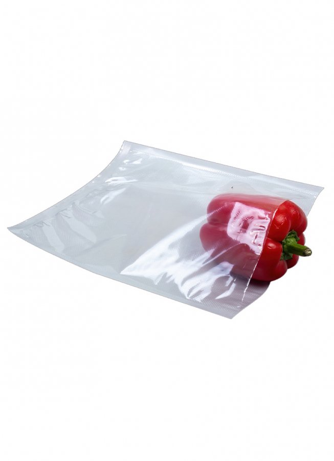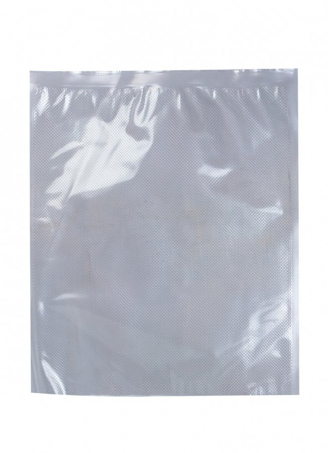 - Одна сторона с рифленой текстурой, другая - ровная. Рифление – это выделяющиеся над поверхностью полиэтиленовой пленки линии, которые пересекаются между собой. Специальная структура предназначена для более эффективного откачивания вакууматором воздуха из пакета.