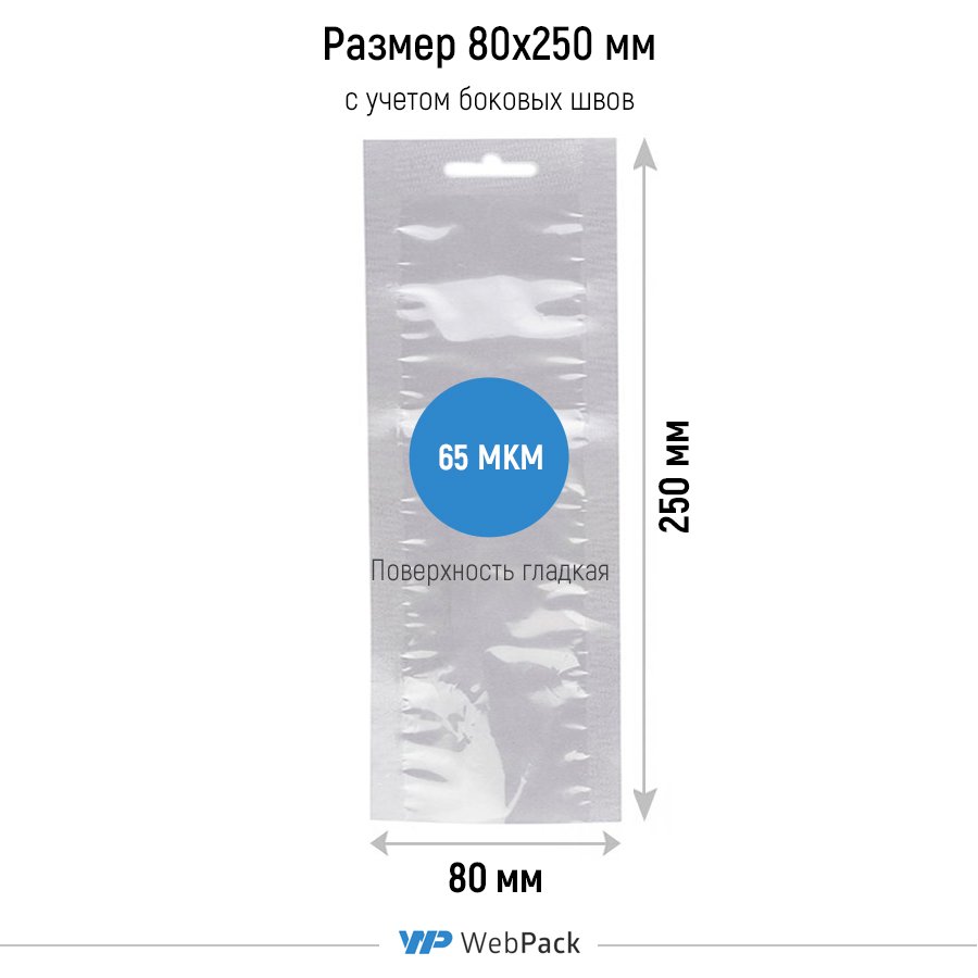 Вакуумный пакет 80*250мм, ПЭТ/ПЭ, 65 мкм, с еврослотом