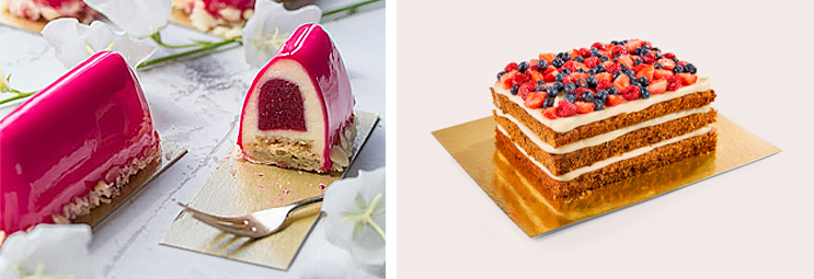 - Подложки создают дополнительную твердость упаковки, что позволяет надежно фиксировать торты и десерты в коробках, не увеличивая при этом вес товара.