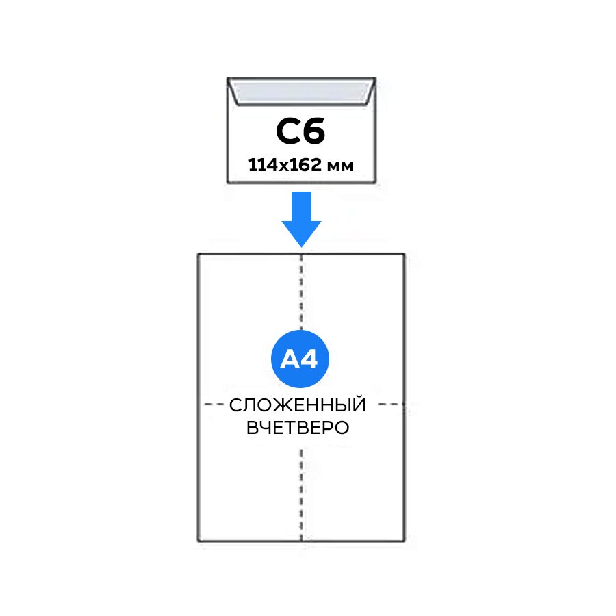 • В конверт C6 входит лист формата А4 сложенный вчетверо.