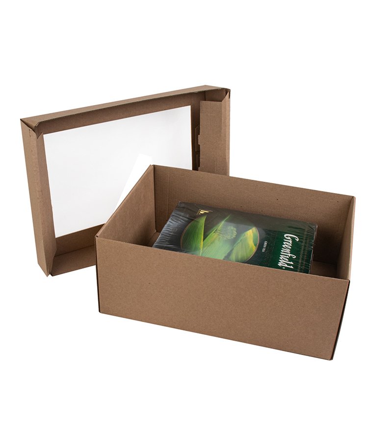 Коробка с крышкой и окном 300*220*120мм, бурый