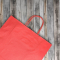 • Бумажные крафт пакеты красного цвета с кручеными ручками, размер 26x15x35 см.