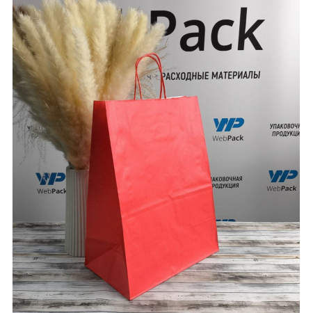 Крафт пакет с кручеными ручками, 260*150*350 (Ш*Г*В) мм (красный)