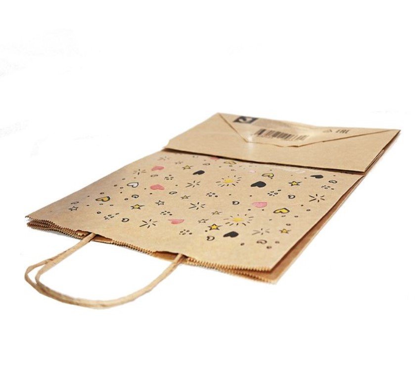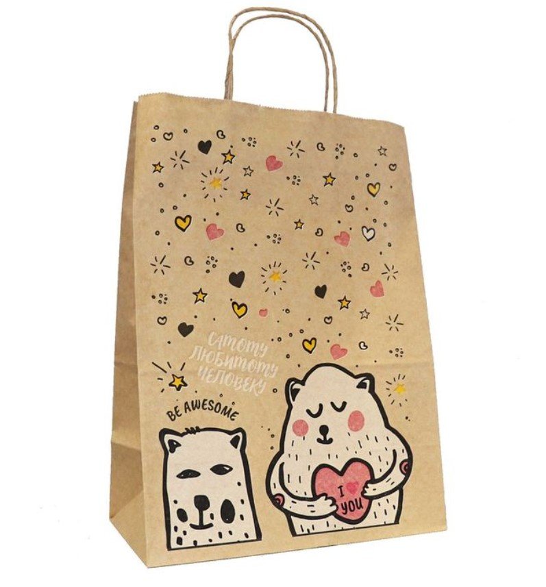 - Кручёные ручки обеспечивают удобство переноски. Прямоугольное дно позволяет ставить пакет на ровную поверхность.