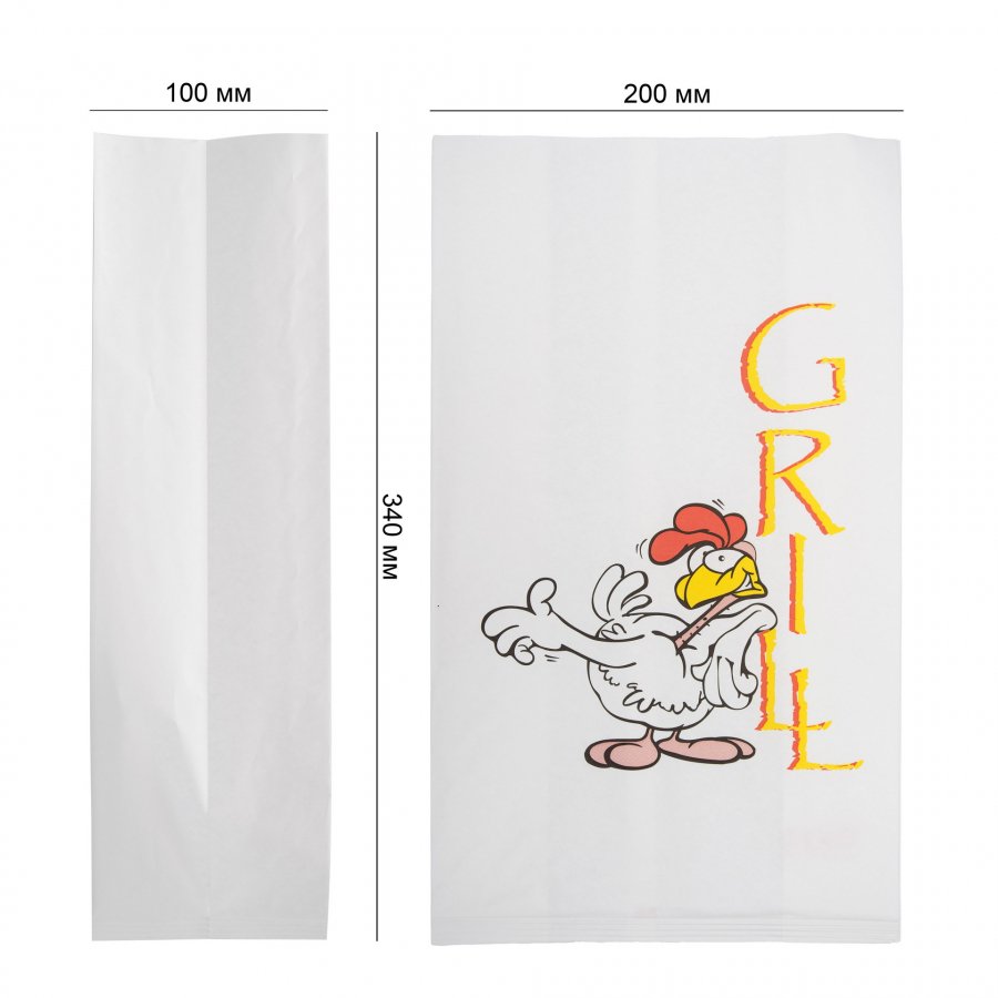 Крафт пакет с V-образным дном, с рисунком 200*100*340мм, 63 г/м2 "Петух"