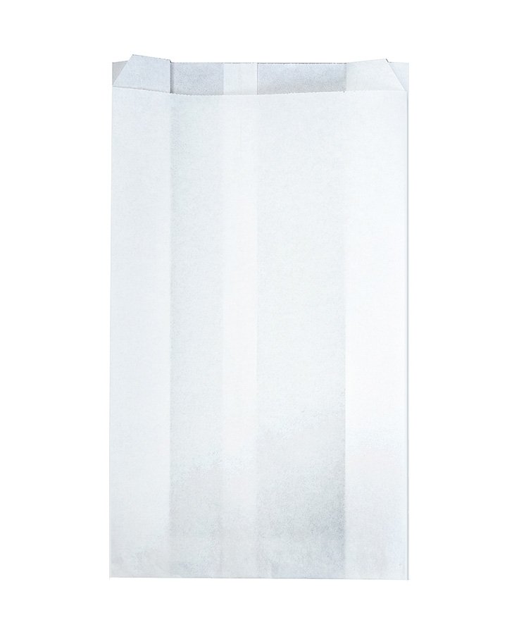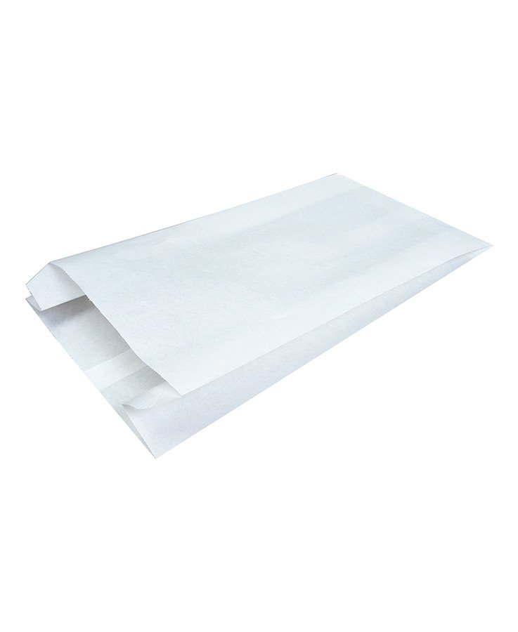 - Жиростойкие крафтовые пакеты белого цвета, размер 170x70x300 мм, с V-образным дном. Имеют вытянутую форму. Изготовлены из бумаги плотностью 40 г/м2. Материал экологичный, биоразлагаемый.