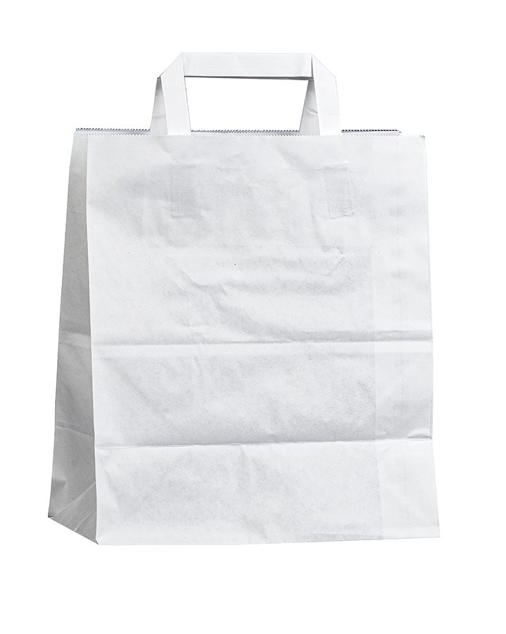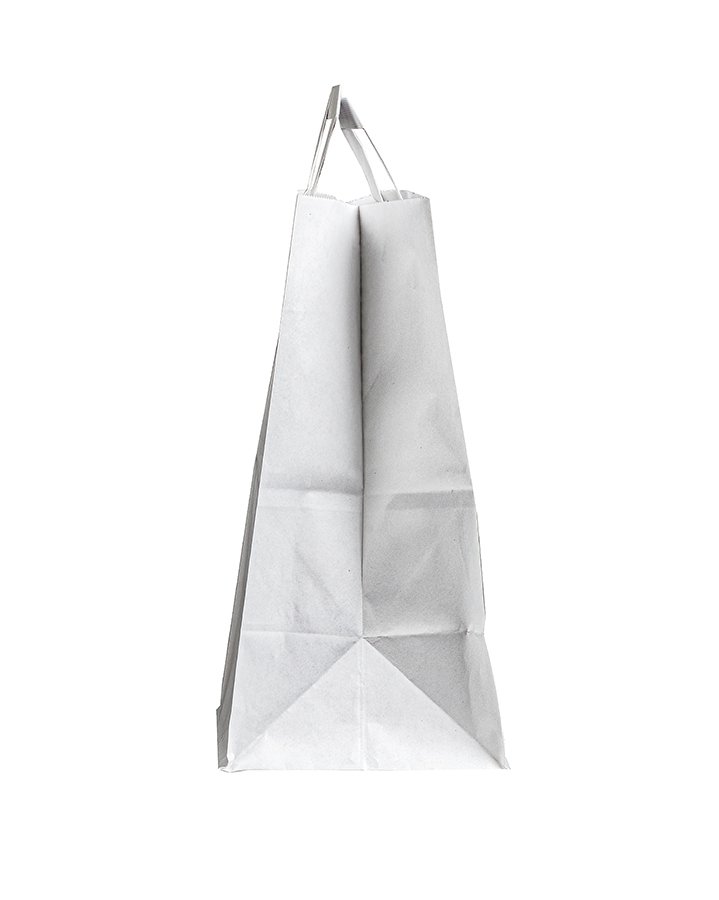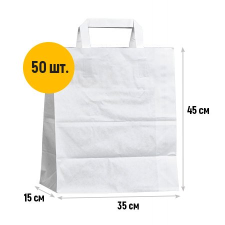 - Крафт пакеты белого цвета с плоскими ручками 350x150x450 мм - универсальные в применении, подходят для упаковки одежды, обуви, аксессуаров, подарков, продуктов и др.