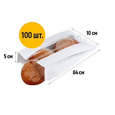 • Белые крафт пакеты 100(50)x50x640мм с V-образным дном используются для упаковки хлеба, багетов, булок и сэндвичей. Также подходят для фасовки всех видов сыпучих продуктов.