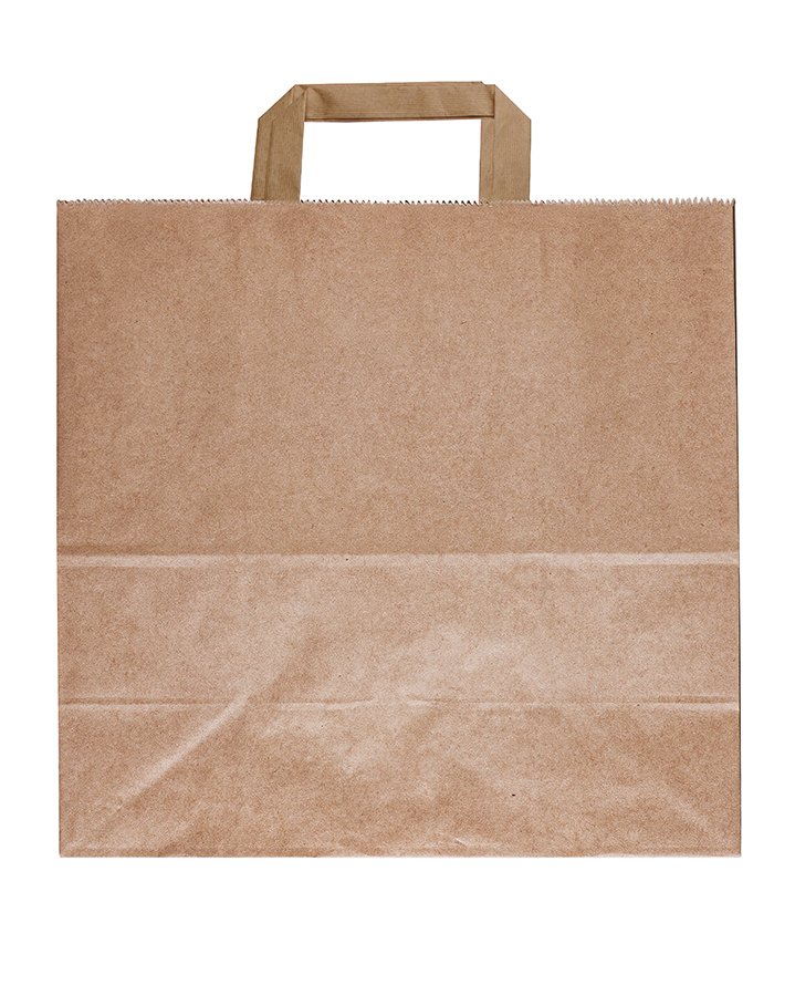 - Крафт пакеты бурого цвета с плоскими ручками 280x150x320 мм - универсальные в применении, подходят для упаковки одежды, обуви, аксессуаров, подарков, продуктов и др.