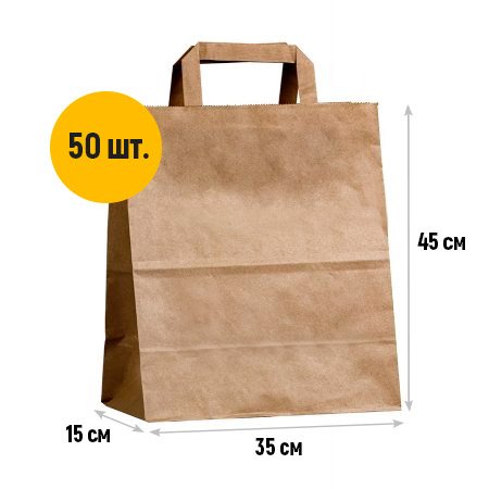 - Крафт пакеты бурого цвета с плоскими ручками 350x150x450 мм - универсальные в применении, подходят для упаковки одежды, обуви, аксессуаров, подарков, продуктов и др.