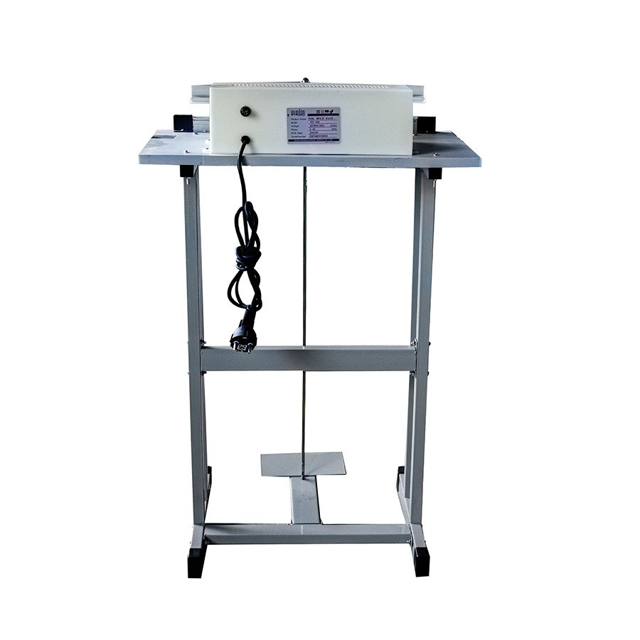 Ножной импульсный запайщик FRT-400 позволяет получить ровный и прочный шов длиной до 40 сантиметров. Время, необходимое для запайки одного пакета – от 0,2 до 2 секунд. Модель имеет удобную и простую панель управления. Данный аппарат весит 7,5 кг. Импульсная мощность в Вт – 450.