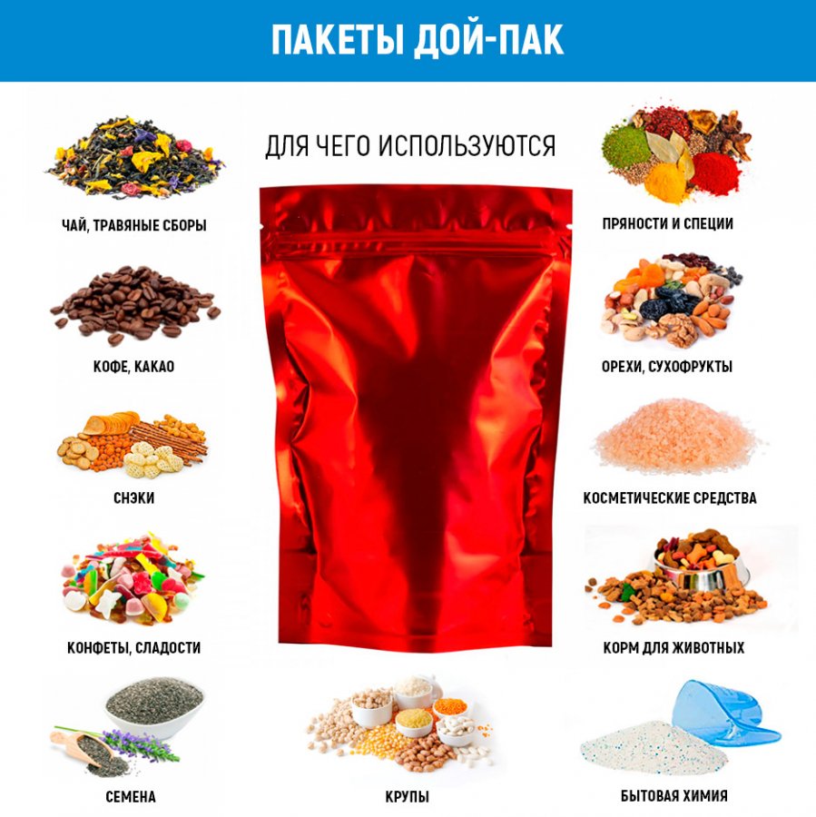 Подходят для фасовки и хранения мелкой и сыпучей продукции (чай и травяные сборы, кофе, специи, орехи, сухофрукты, крупы и бобовые, сладости, различные снэки, скрабы, морская соль, корма для животных и др.