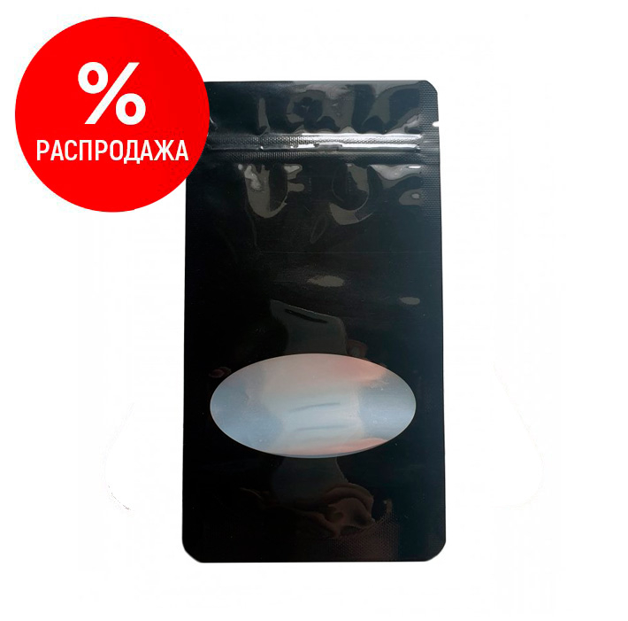 Пакет Дой-Пак 135*225(+40)мм, Металл/PET/БОПП (черный) с овальным окном