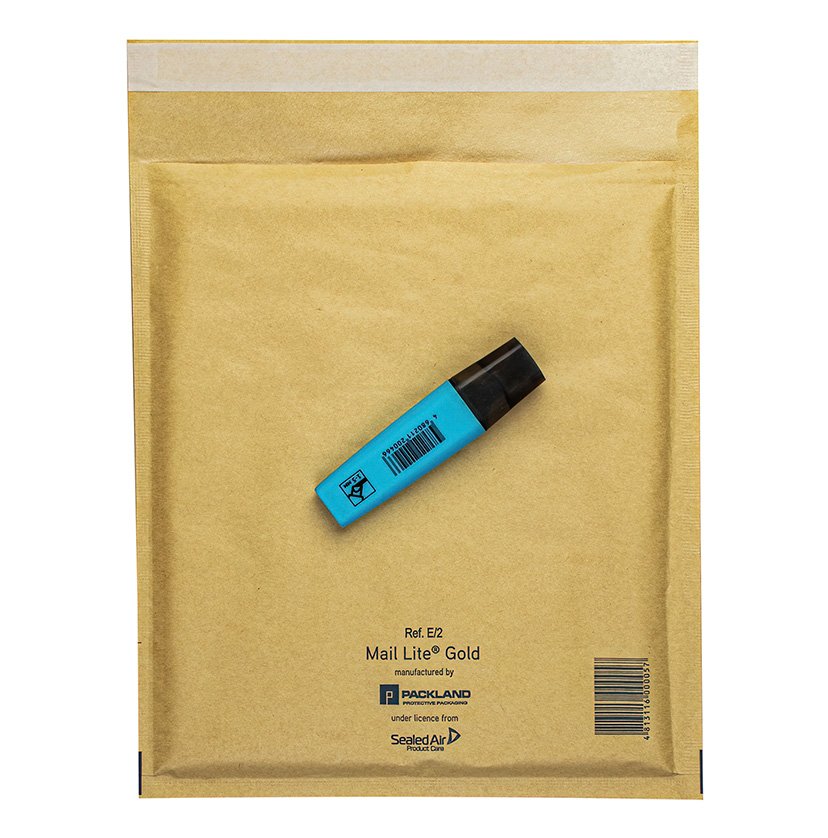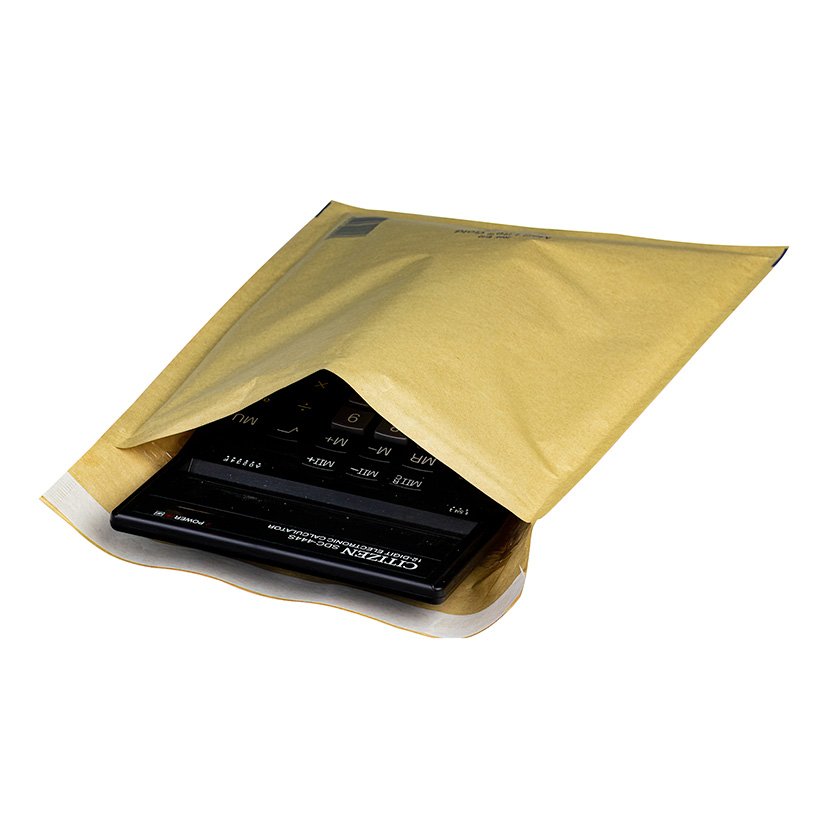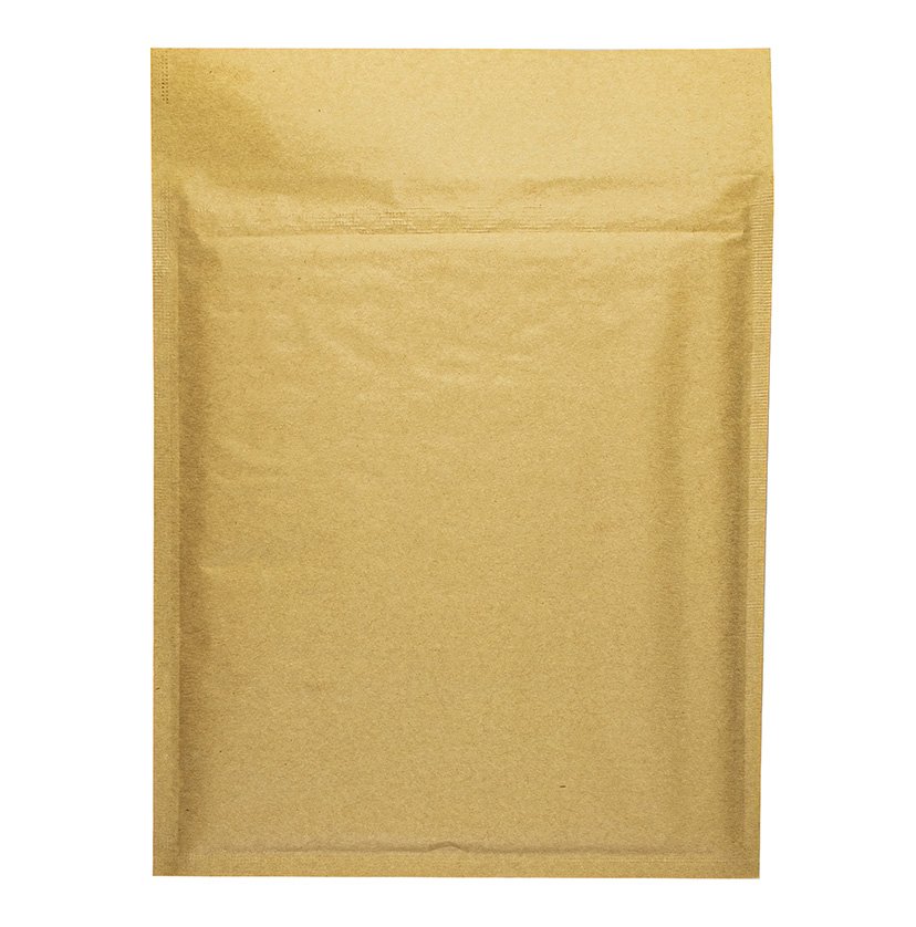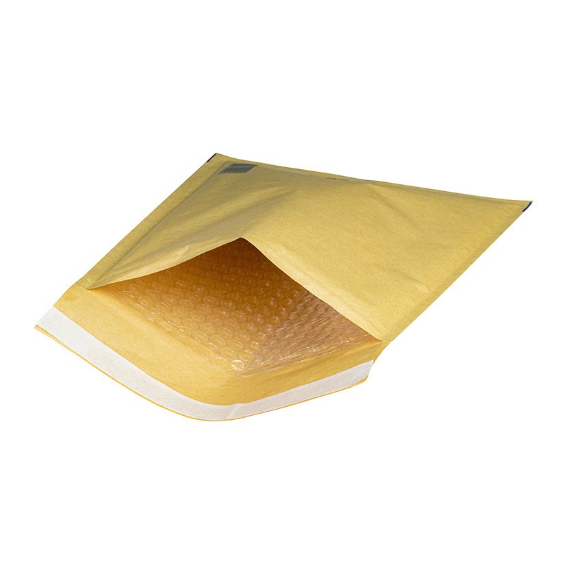 Пакет с воздушной подушкой внутри, коричневая бумага снаружи, на клапане отрывная лента.