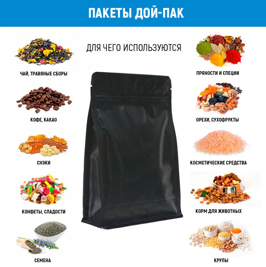 - Пакеты дой-пак размер 13,5 x 20,5 см, восьмишовные, цвет черный матовый.