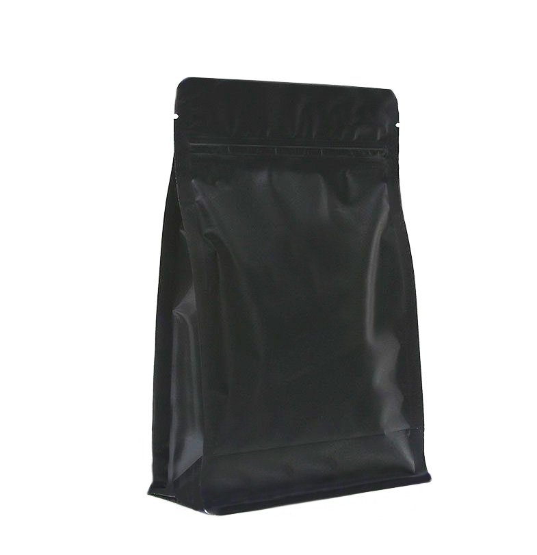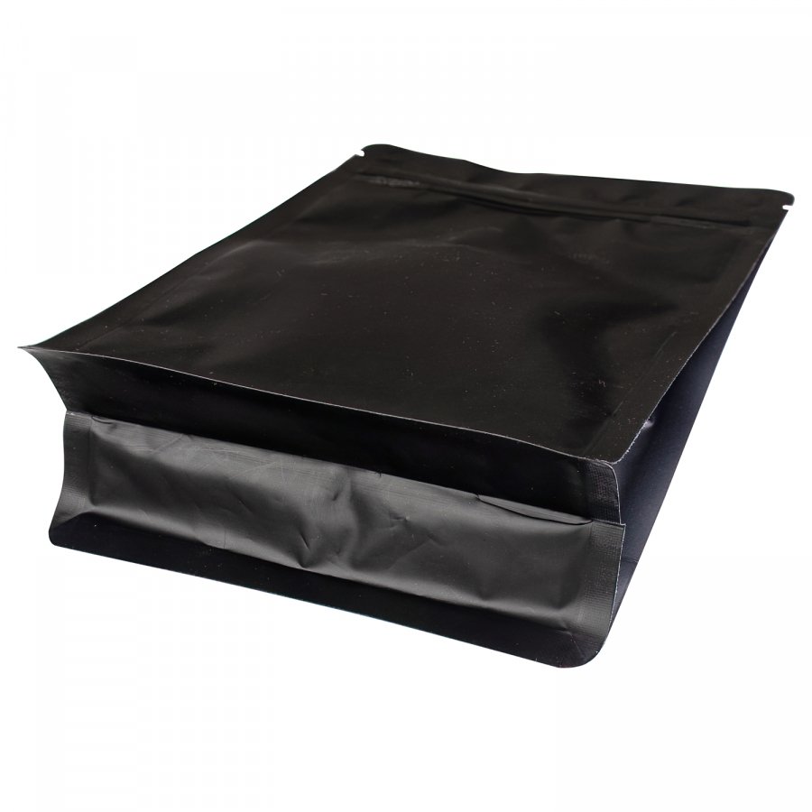 Пакет восьмишовный с плоским дном черный матовый с замком зип лок 135+65х205