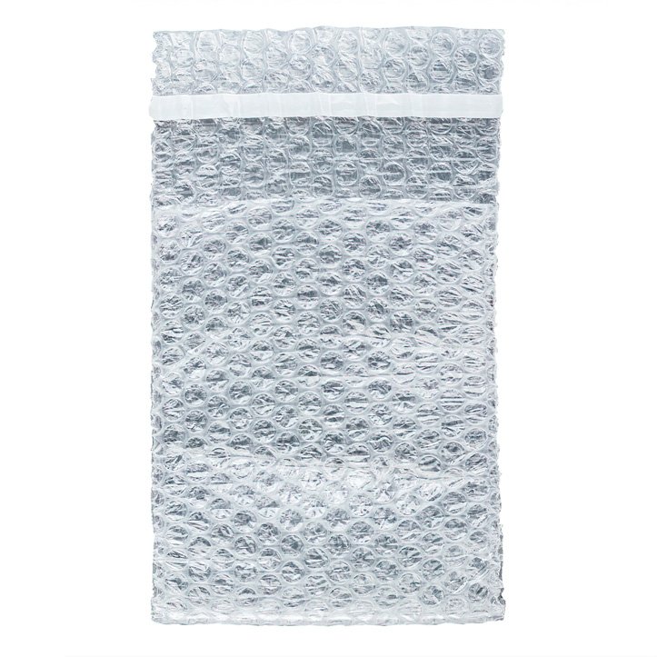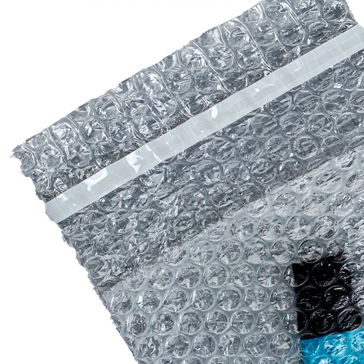 - Воздушно-пузырчатые пакеты с клеевым клапаном, состоящие из трёх слоев (полиэтилен + слой с пузырьками + полиэтилен), 15x17 см + 6 см клапан.