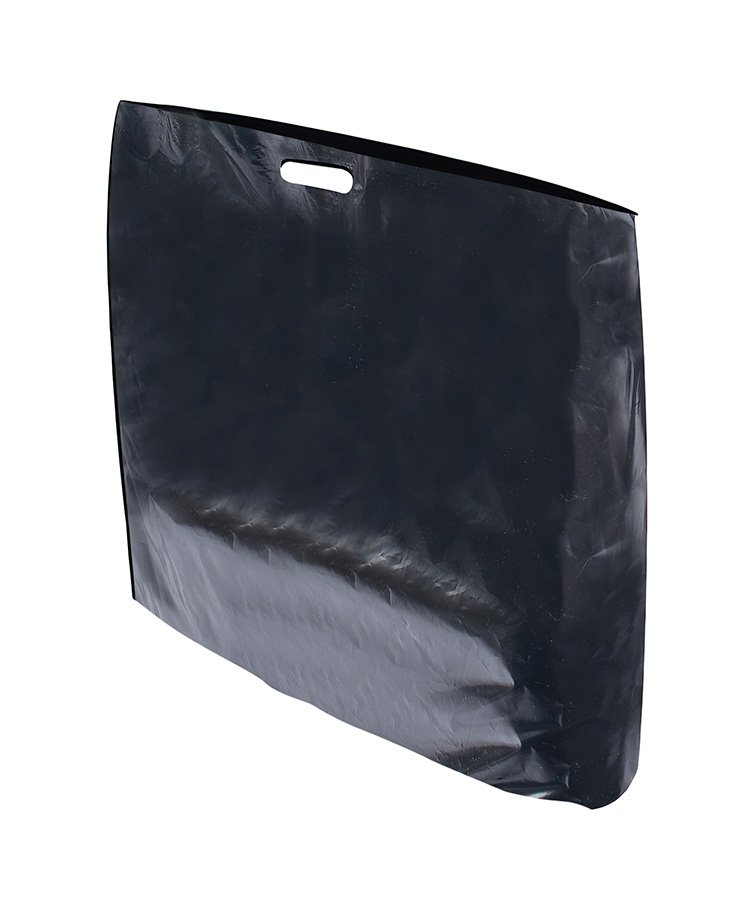 - Черные пакеты ПВД с вырубной ручкой, размер 70x60 см (толщина 80 микрон) с донной складкой.