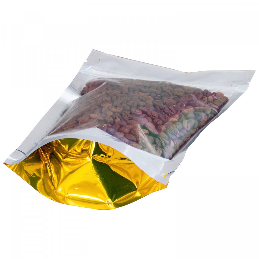 • Пакеты дой-пак 105*150(+35)мм - одна сторона прозрачная, другая - золотистого цвета. Применяются для упаковки и хранения сыпучей продукции (кофе, чай, крупа, специи, орехи, сухофрукты, сладости, снэки, морская соль и др.).