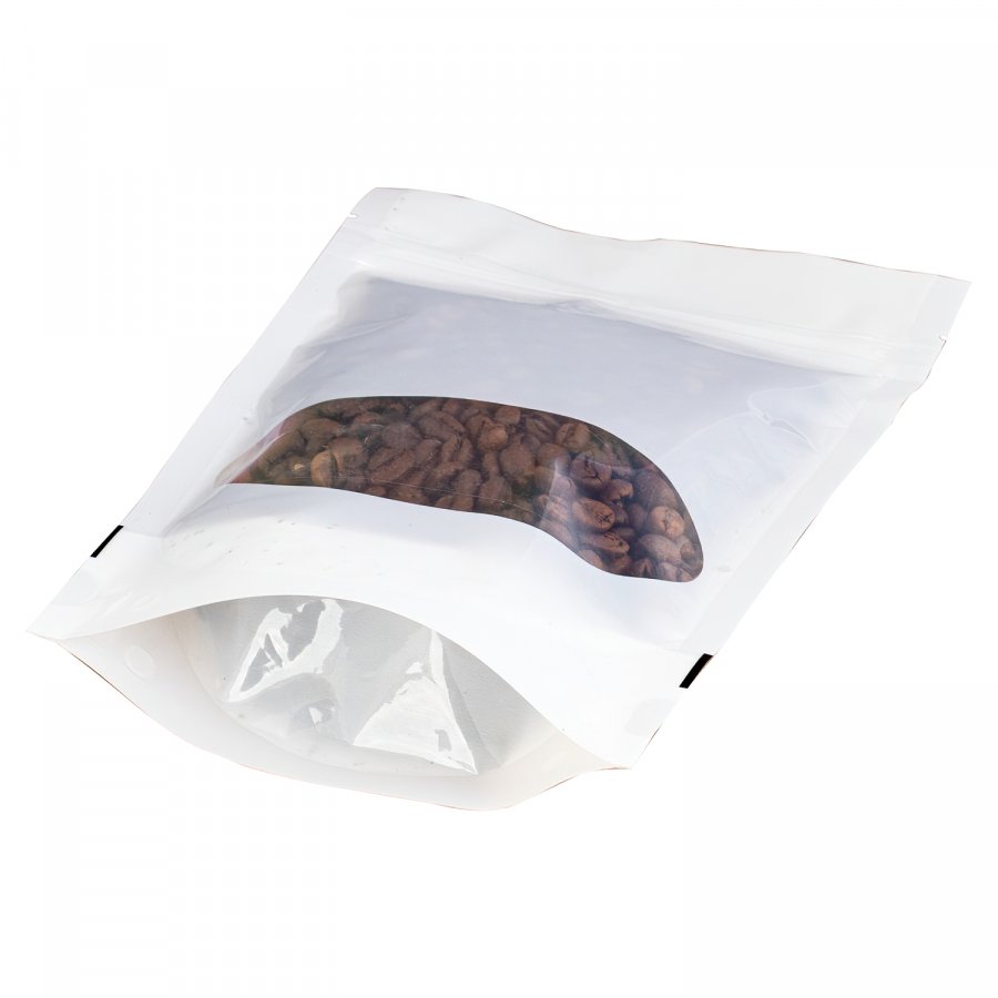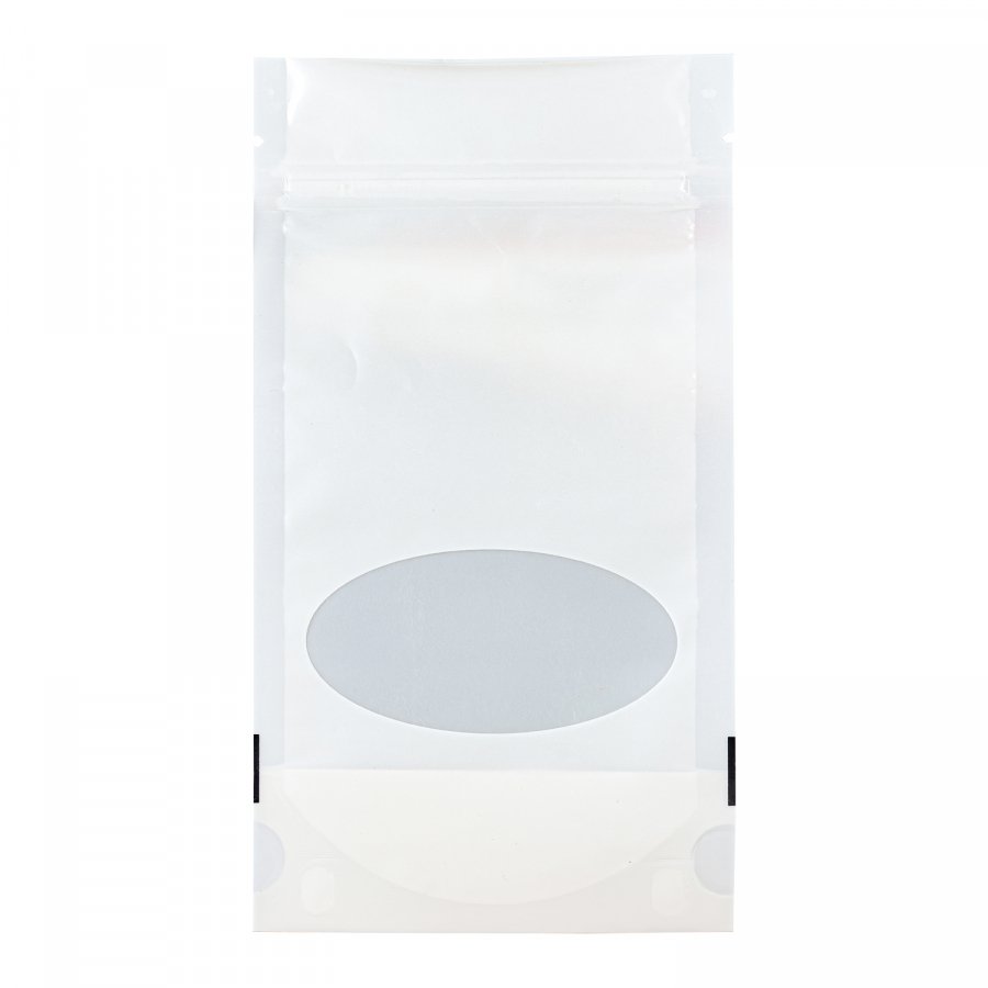- Пакеты дой-пак с овальным окошком размер 10,5 x 19 см, цвет белый матовый.
