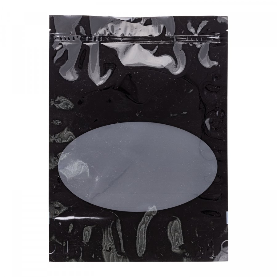 • Пакеты дой-пак с овальным окошком размер 10,5 x 19 см, цвет черный.