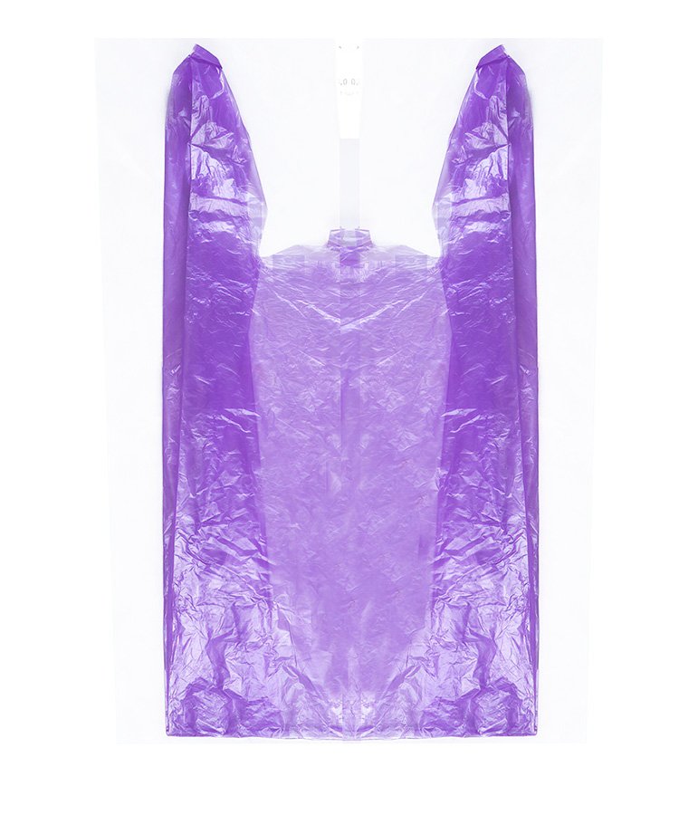Пакеты-майка фиолетового цвета, размер 24x44 см, толщина 11 мкм. Есть боковые фальцы. Используются в магазинах и супермакетах для упаковки различных товаров (одежды, обуви, техники, канцелярии и др.).