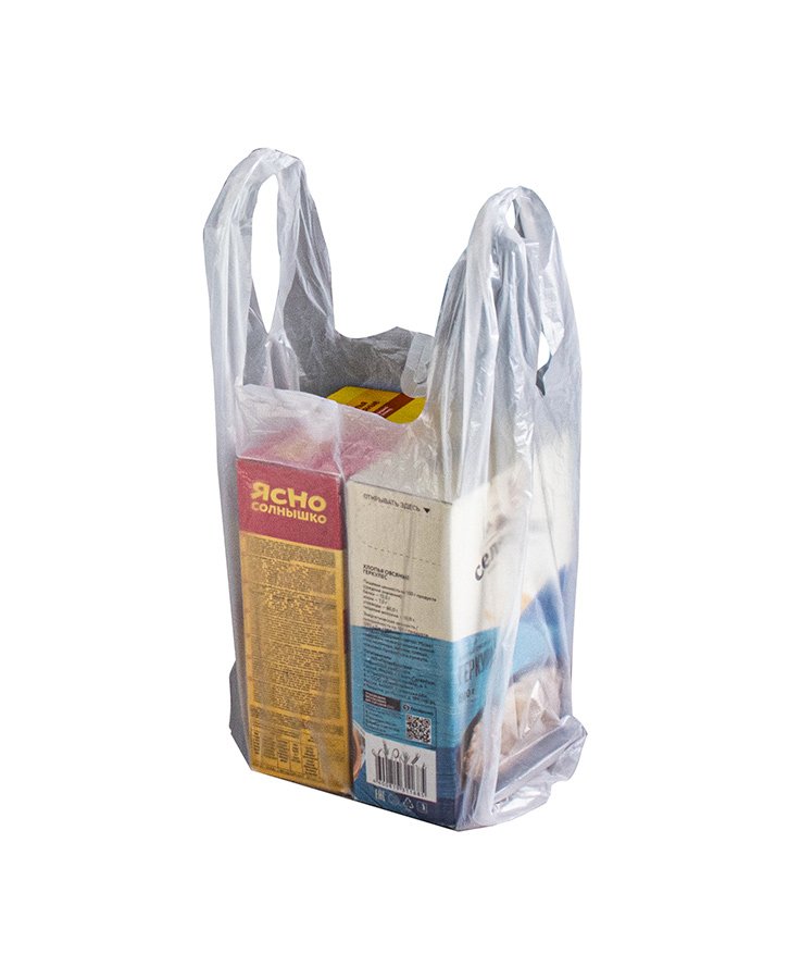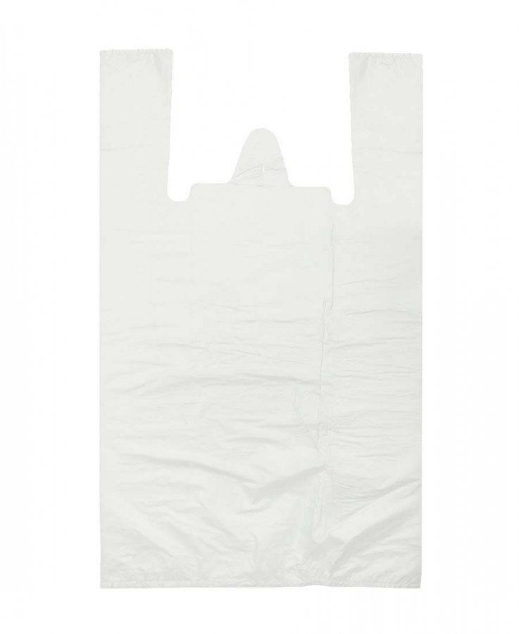 Пакеты-майка белого цвета, размер 22,5x43 см, толщина 12 мкм. Есть боковые фальцы. Используются в магазинах и супермакетах для упаковки различных товаров (одежды, обуви, техники, канцелярии и др.).