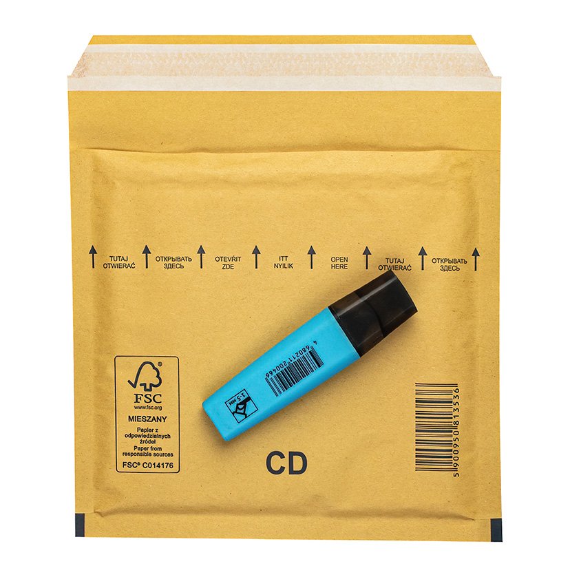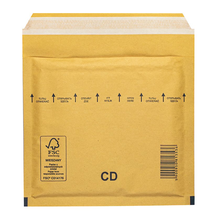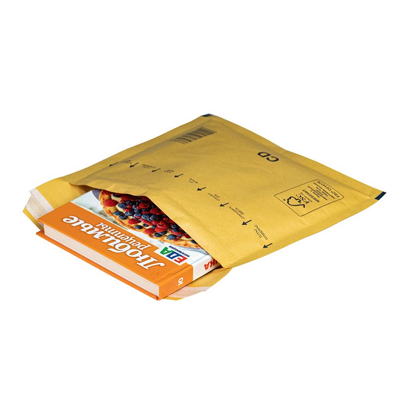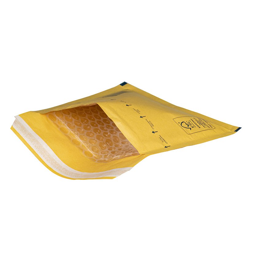 Пакет с воздушной подушкой внутри, коричневая бумага снаружи, на клапане отрывная лента.