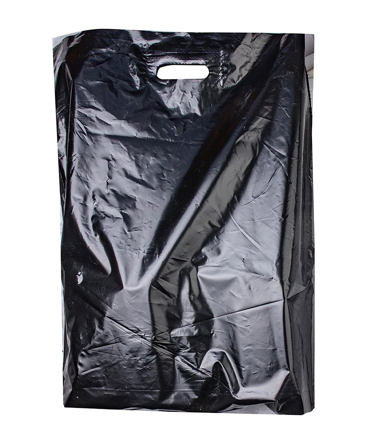 - Черные пакеты ПВД с вырубной ручкой, размер 50x60 см (толщина 80 микрон) с донной складкой.