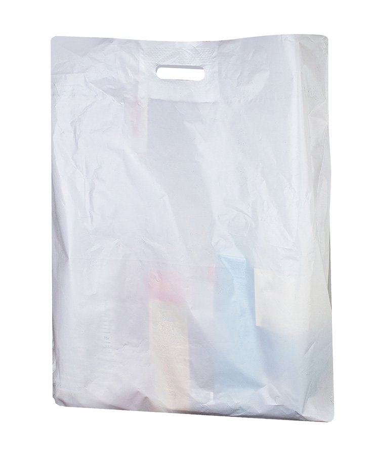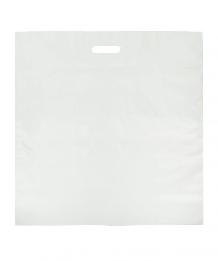- Белые пакеты ПСД с вырубной ручкой, размер 60x60 см (толщина 80 микрон) без донной складки.