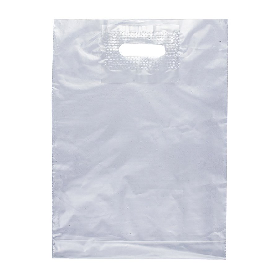 • Прозрачные пакеты из материала ПВД с вырубной ручкой, 30x40 см, толщиной 50 мкм, донная складка - 3 см.