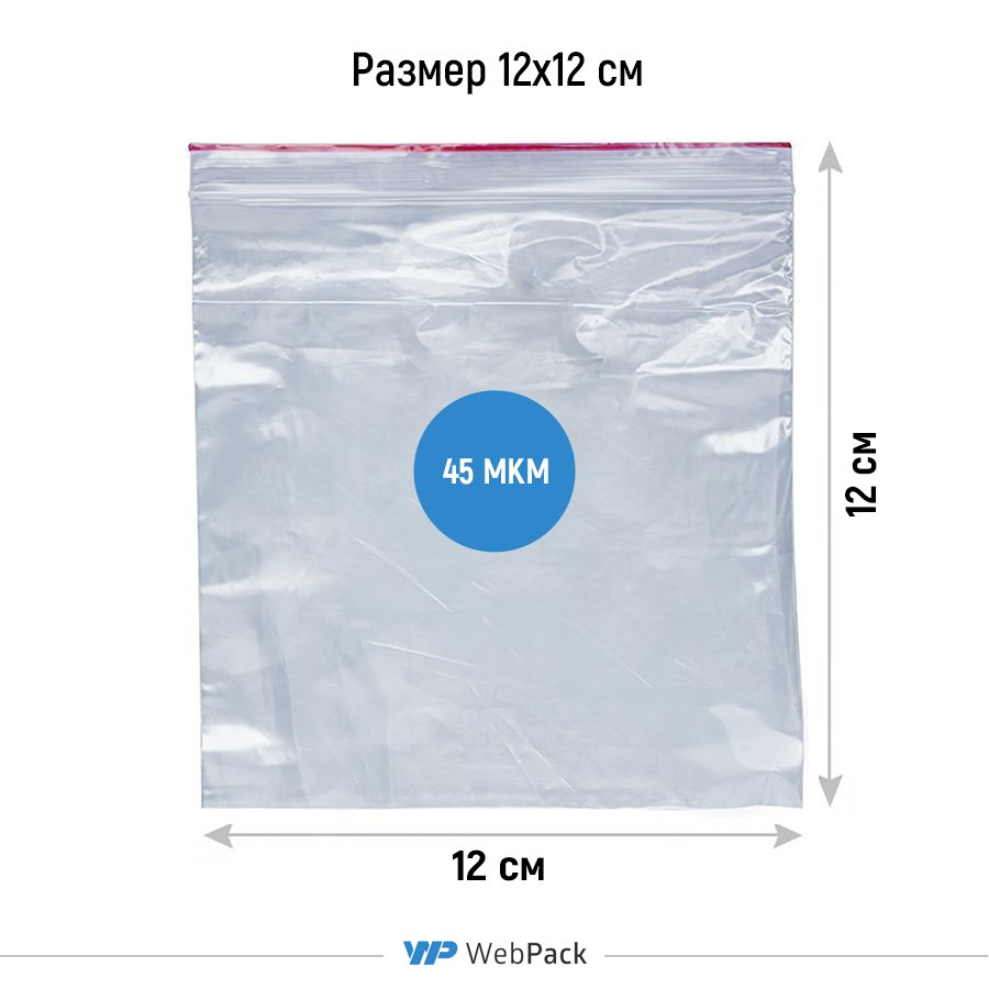 - Прозрачные пакеты с замком Зип-Лок 12x12 см, толщина 45 мкм, предназначены для фасовки, хранения и продажи штучной и сыпучей продукции.
