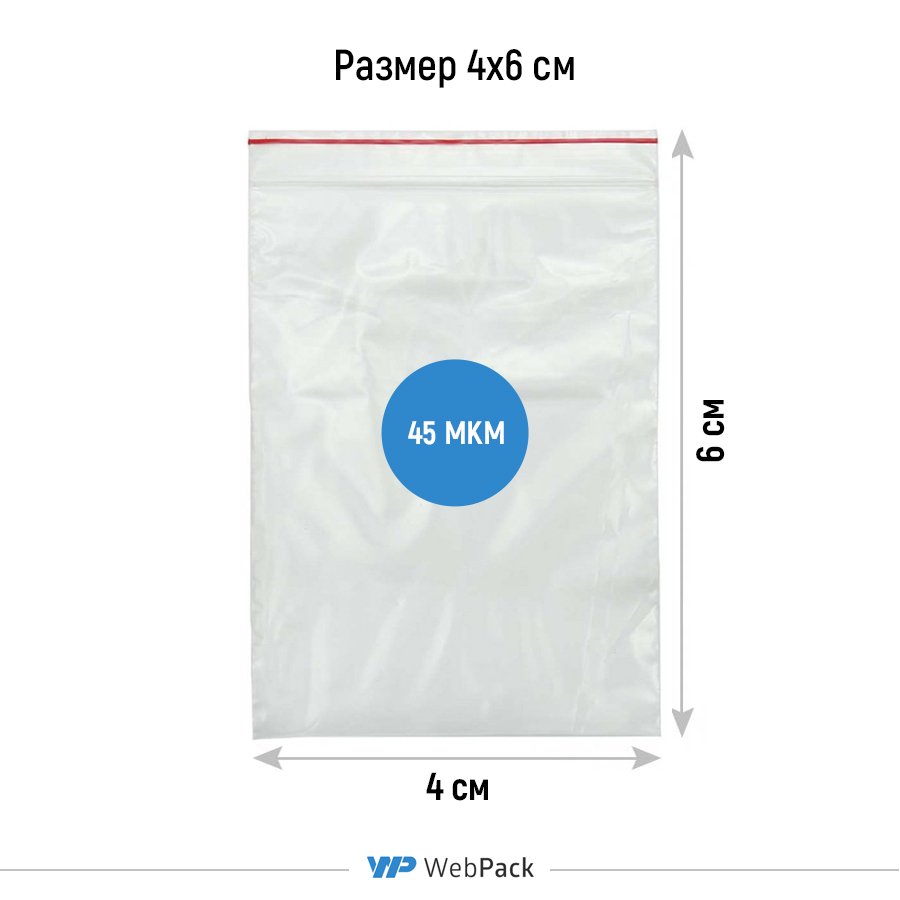 • Прозрачные пакеты с замком Зип-Лок 4x6 см, толщина 45 мкм, предназначены для фасовки, хранения и продажи штучной и сыпучей продукции.
