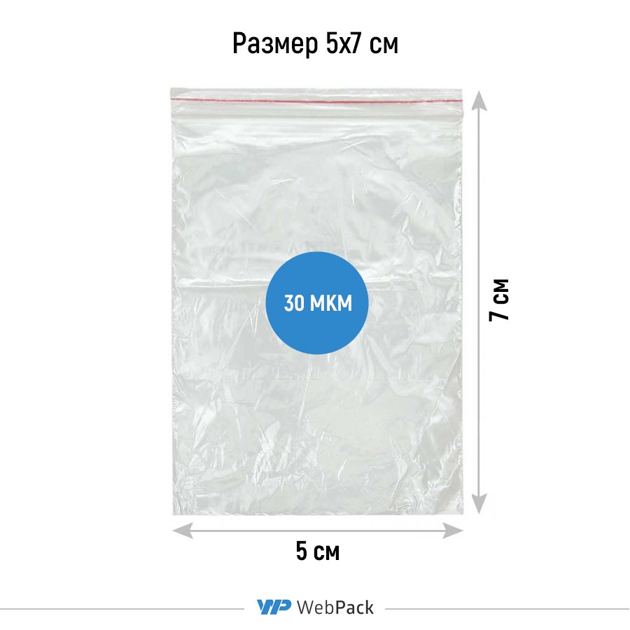 - Прозрачные пакеты с замком Зип-Лок 5x7 см, толщина 30 мкм, предназначены для фасовки, хранения и продажи штучной и сыпучей продукции.