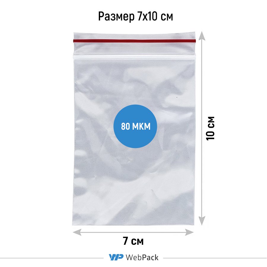 - Прозрачные пакеты с замком Зип-Лок 7x10 см, толщина 80 мкм, предназначены для фасовки, хранения и продажи штучной и сыпучей продукции.